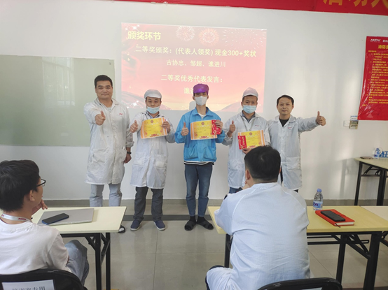 In April, the South China factory received a total of 168 proposals, which were reviewed by the review team of the General Manager's Office and finally awarded 1 first prize, 3 second prizes, and 6 third prizes. The personnel were presented with honorary certificates, bonuses and group photos.