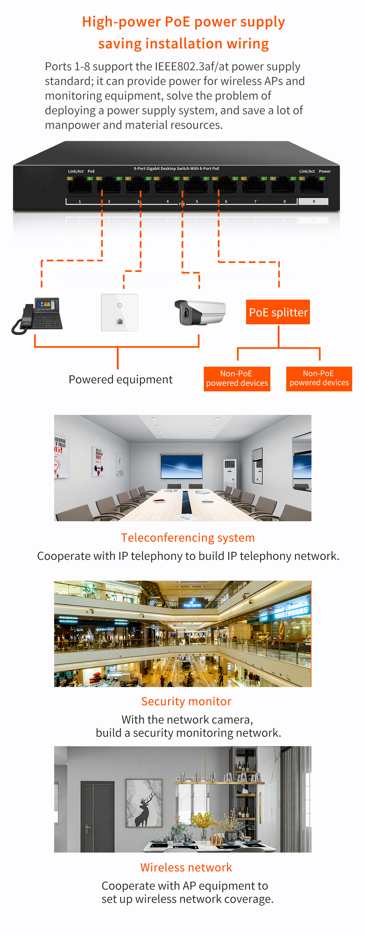 9-port Gigabit 8-port POE powered switch